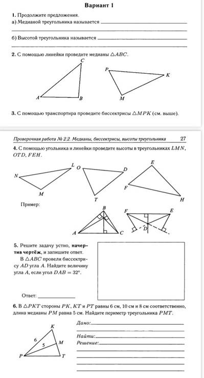 ПРАКТИЧЕСКАЯ РАБОТА ПО ГЕОМЕТРИИ "ПОСТРОЕНИЕ МЕДИАН, БИССЕКТРИС И ВЫСОТ ТРЕУГОЛЬНИКА"