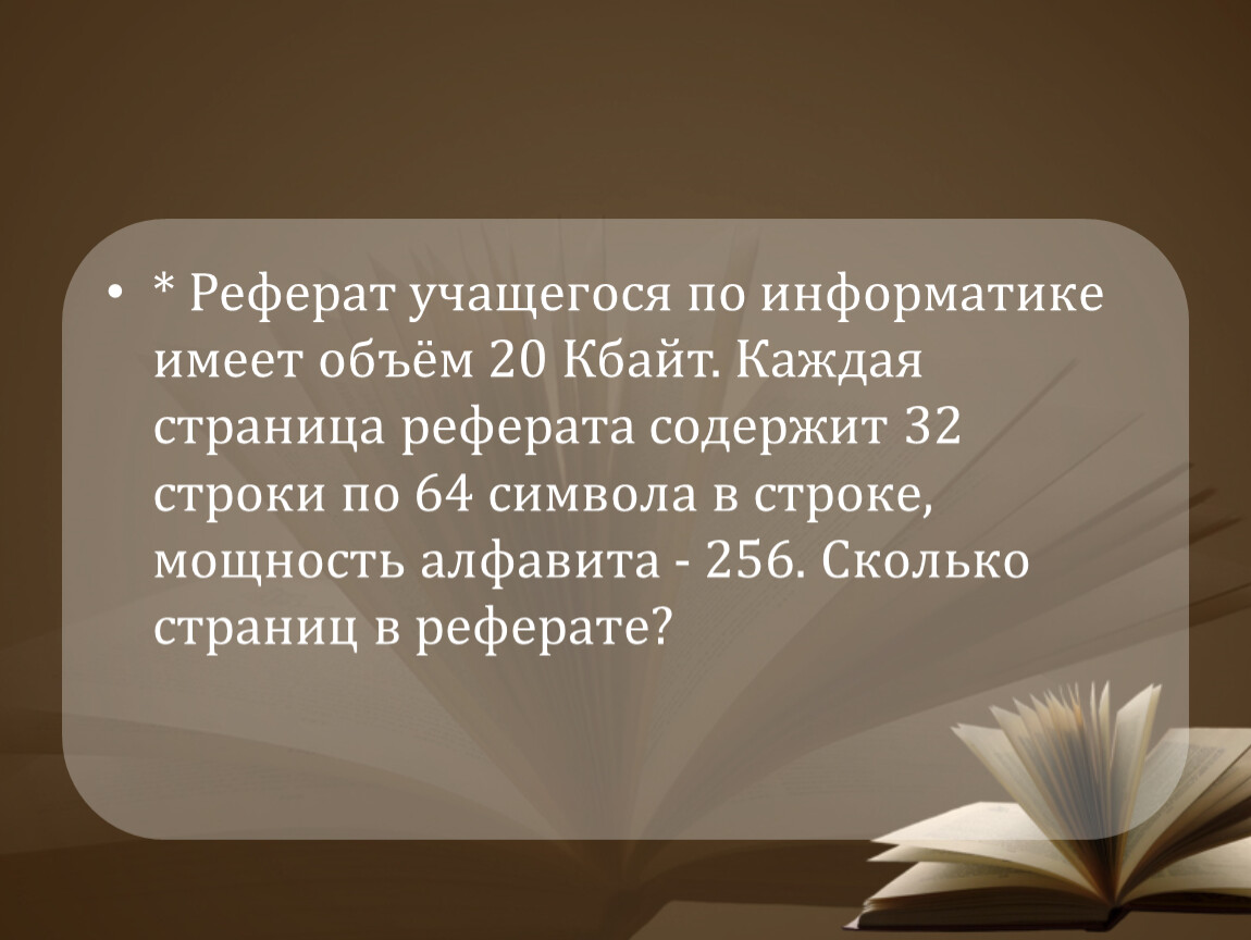 Информационное сообщение объёмом 450 битов состоит из 150 символов. Каков информационный вес каждого символа этого сообщения?