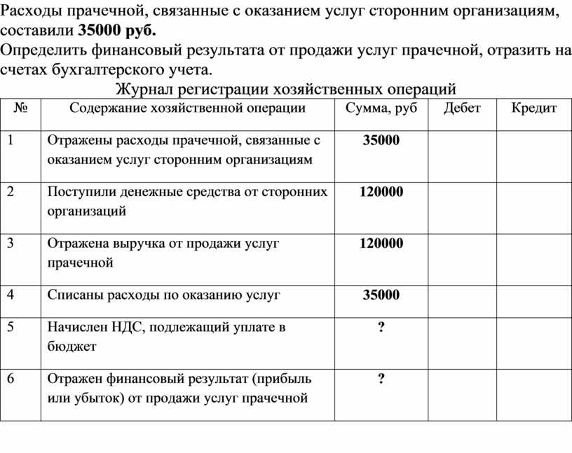 Расходы прачечной, связанные с оказанием услуг сторонним организациям, составили 35000 руб.