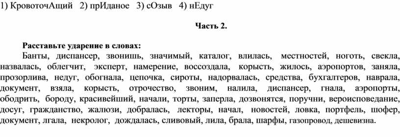 1) ловкА 2) защЕмит 3) бАнты 4) создАв 5) красИвее