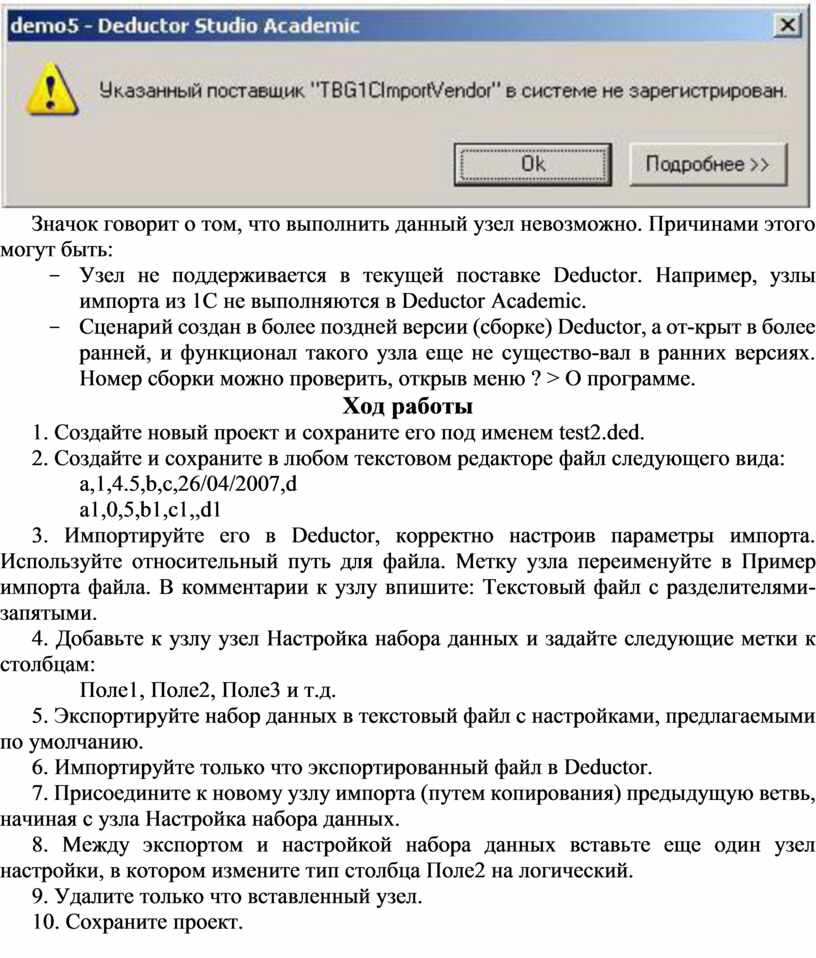 - Узел не поддерживается в текущей поставке Deductor. Например, узлы импорта из 1С не выполняются в Deductor Academic.