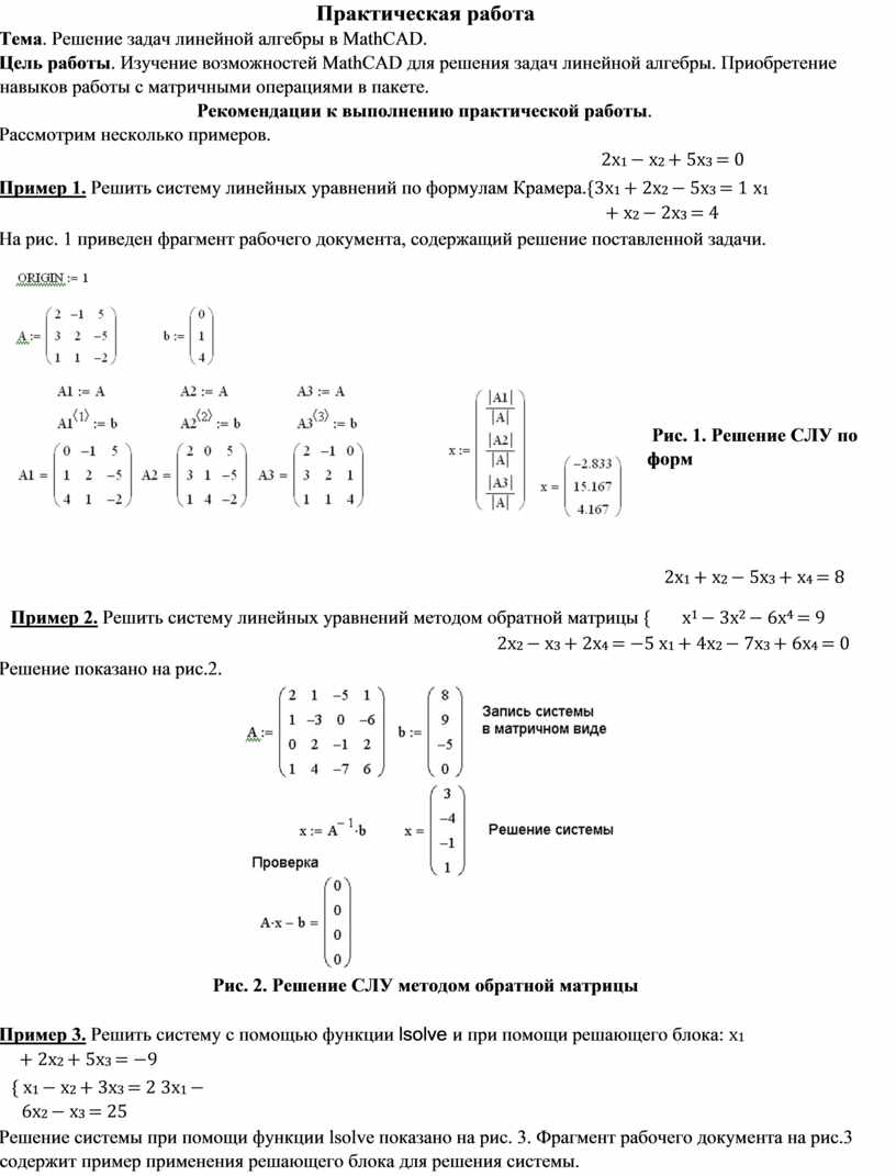 Тема. Решение задач линейной алгебры в MathCAD.