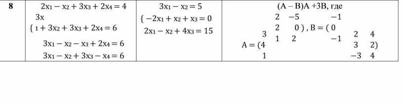 2х1 − х2 + 3х3 + 2х4 = 4 3х { 1 + 3х2 + 3х3 + 2х4 = 6 3х1 − х2 − х3 + 2х4 = 6 3х1 − х2 + 3х3 − х4 = 6 |