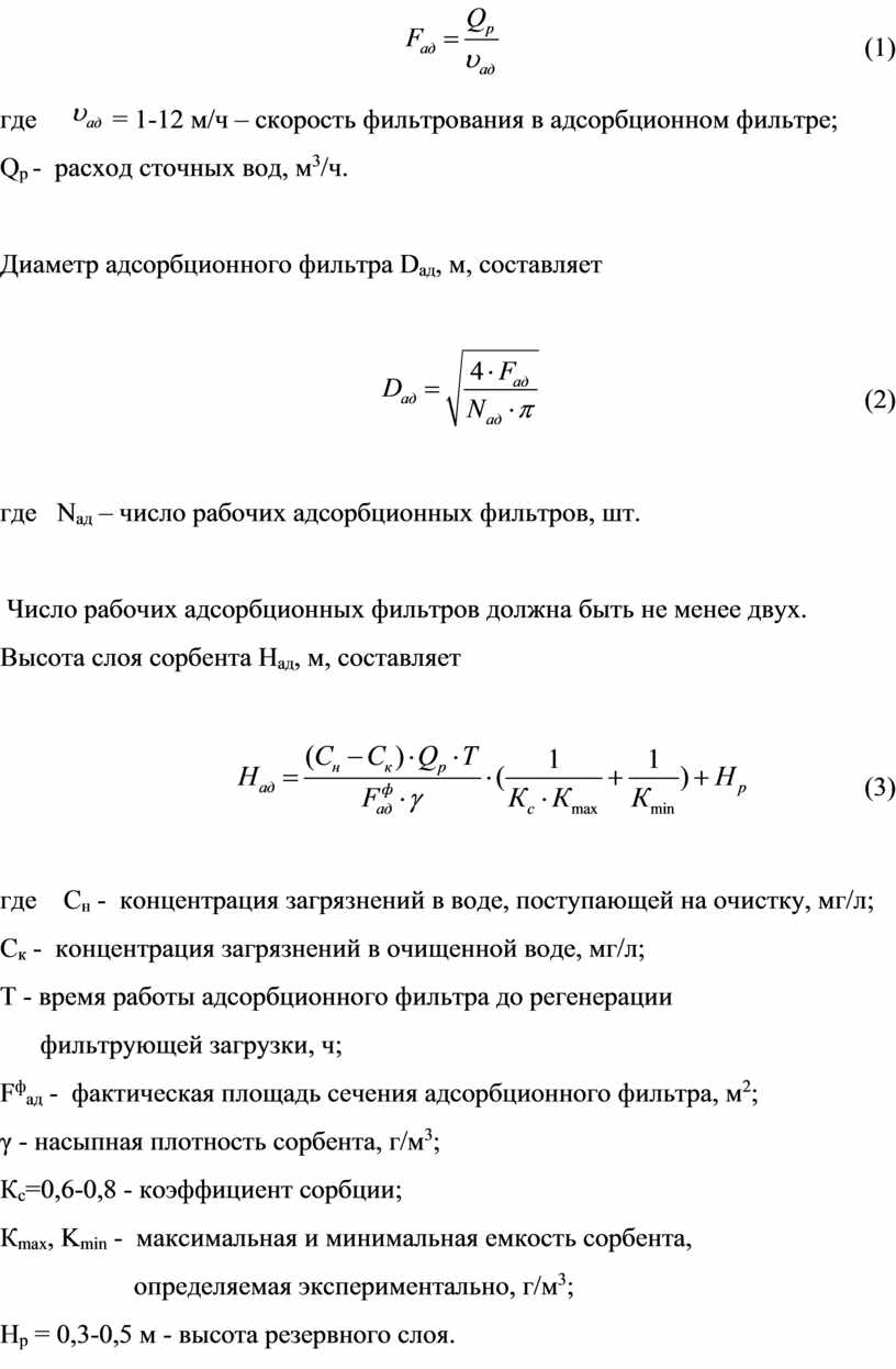 Цель: Изучить правила расчета адсорбционных фильтров для очистки сточных вод промышленных предприятий