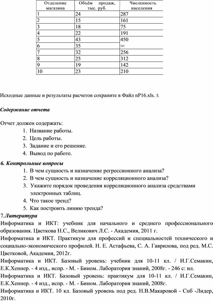 3. Укажите порядок проведения корреляционного анализа средствами электронных таблиц.