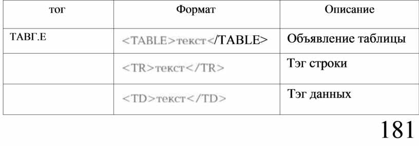 Тэги оформления таблиц и их атрибуты ОПИСАНЫ в табл 27.1 — 27.3.