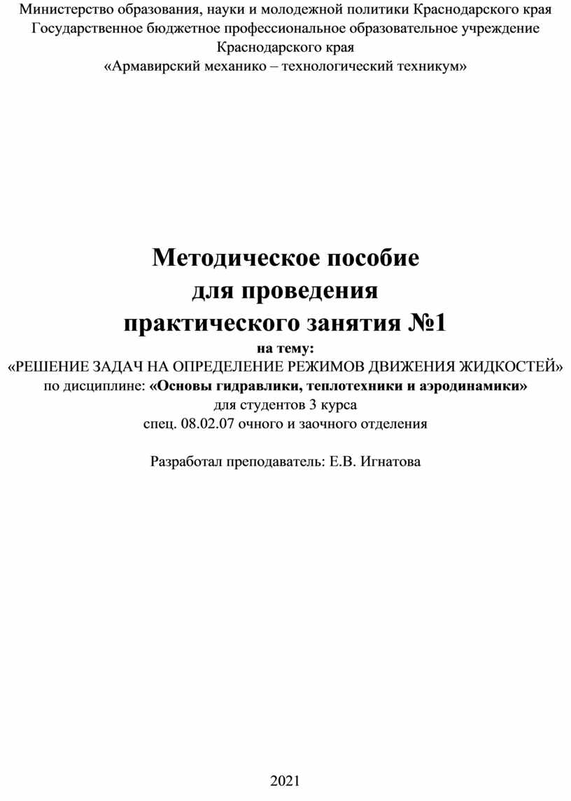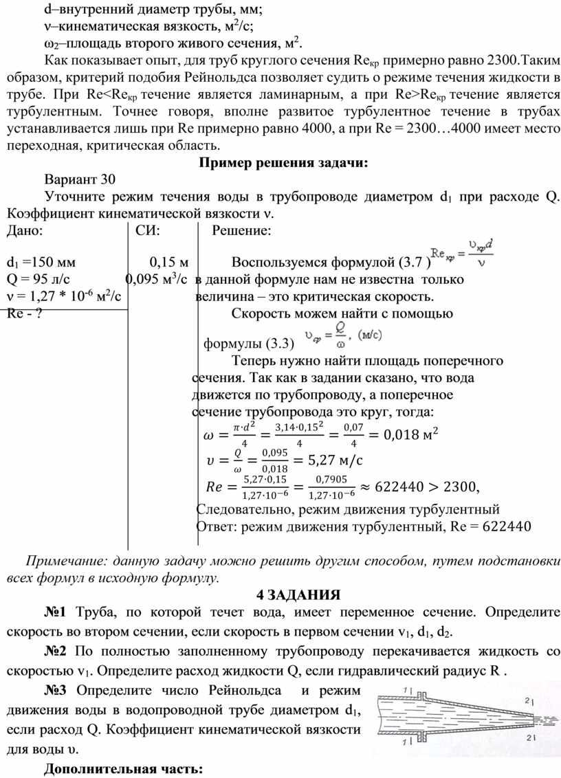 «РЕШЕНИЕ ЗАДАЧ НА ОПРЕДЕЛЕНИЕ РЕЖИМОВ ДВИЖЕНИЯ ЖИДКОСТЕЙ»