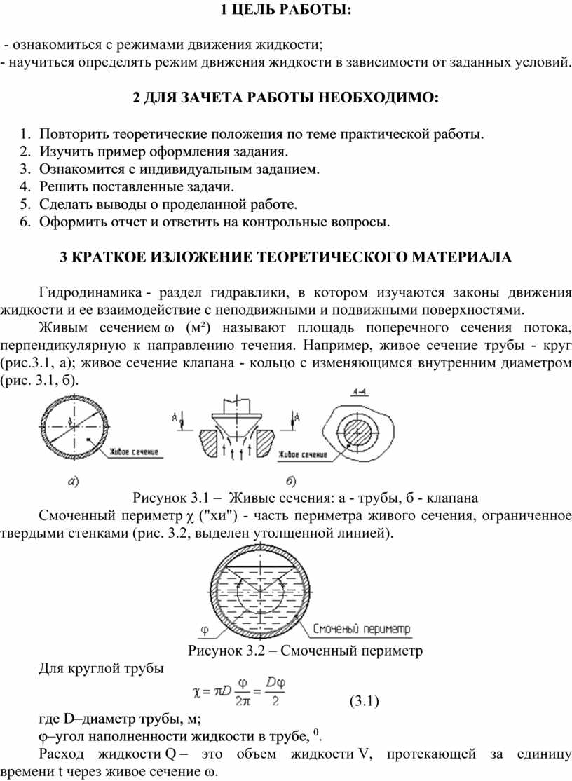 Живым сечением ω (м²) называют площадь поперечного сечения потока, перпендикулярную к направлению течения. Например, живое сечение трубы - круг (рис.3.1, а); живое сечение клапана - кольцо с изменяющимся внутренним диаметром (рис. 3.1, б).