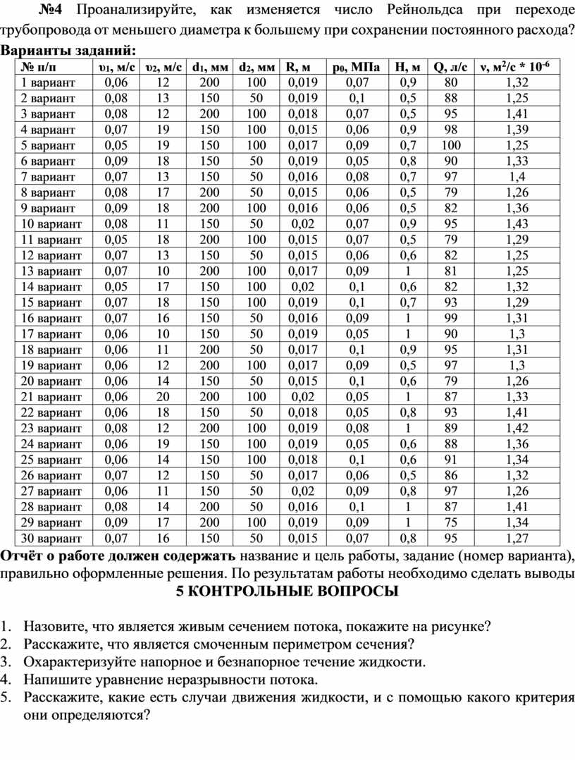 №2 По полностью заполненному трубопроводу перекачивается жидкость со скоростью v1. Определите расход жидкости Q, если гидравлический радиус R .