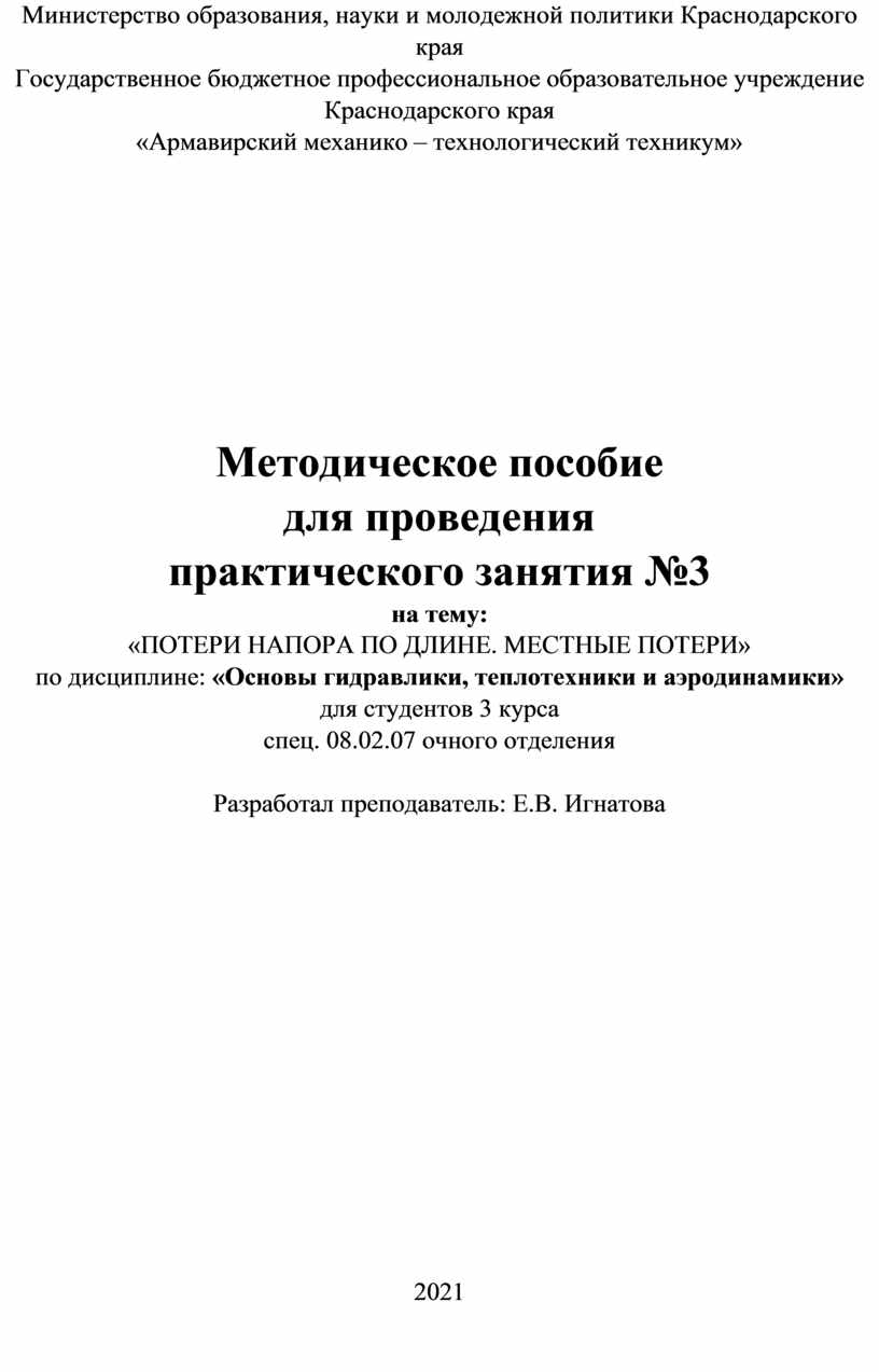 по дисциплине: «Основы гидравлики, теплотехники и аэродинамики»