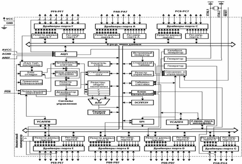 Изобразите эскиз функциональной схемы микроконтроллера AVR АТMEGA128