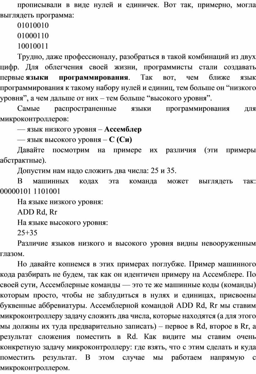 00110101 011000100 так называемые – коды команд, а коды команд – это язык который понимает микроконтроллер. А для того, чтобы перевести наш язык общения на язык микроконтроллера – в эти самые наборы нулей и единичек, существуют специальные программы.