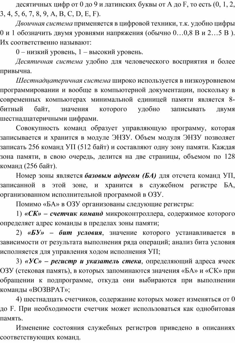 1) «СК» – счетчик команд микроконтроллера, содержимое которого определяет адрес команды в пределах зоны памяти;