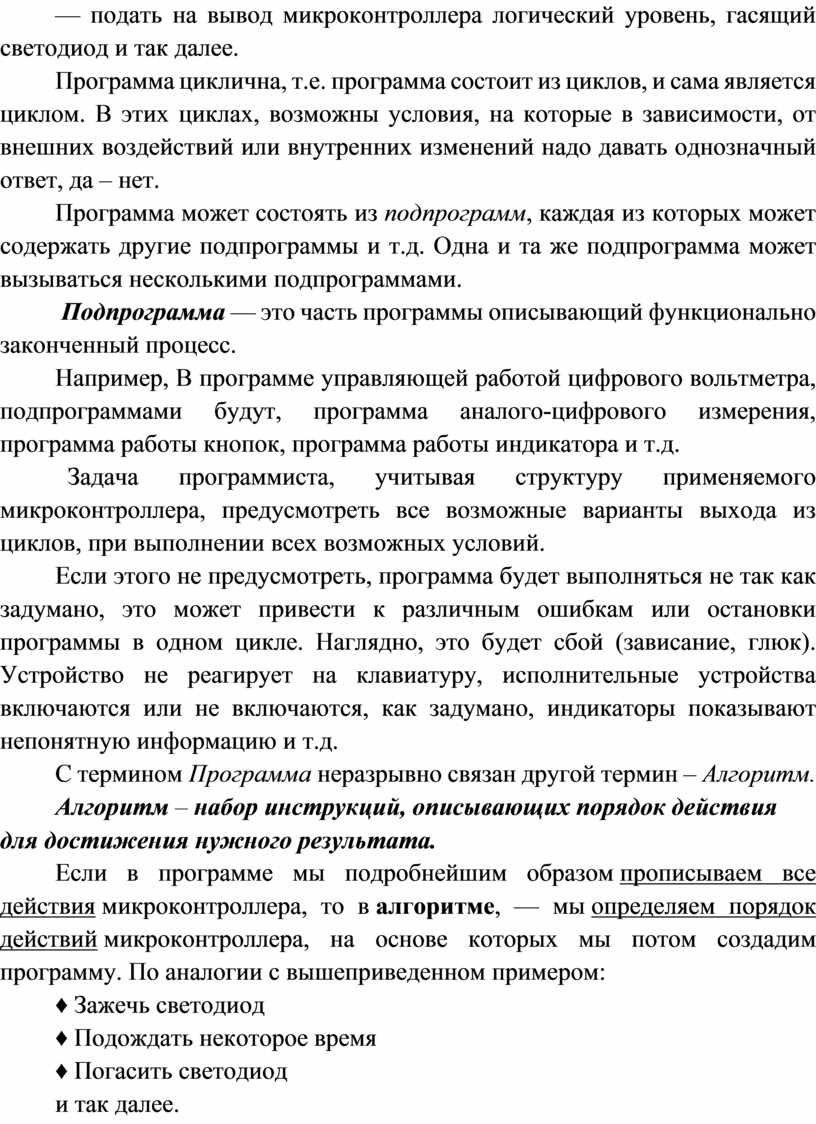 Если в программе мы подробнейшим образом прописываем все действия микроконтроллера, то в алгоритме, — мы определяем порядок действий микроконтроллера, на основе которых мы потом создадим программу. По аналогии с вышеприведенном примером: