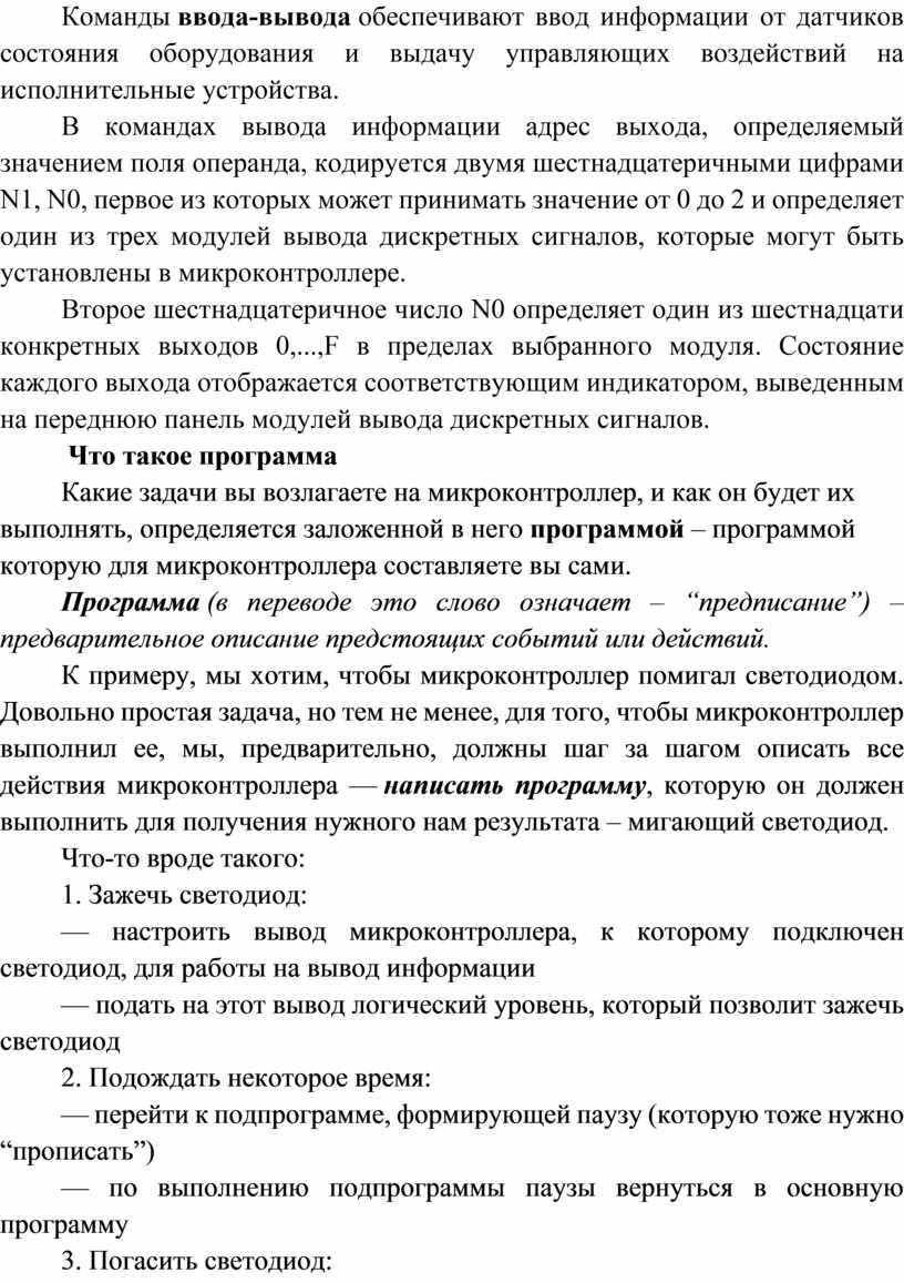 Команды ввода-вывода обеспечивают ввод информации от датчиков состояния оборудования и выдачу управляющих воздействий на исполнительные устройства.