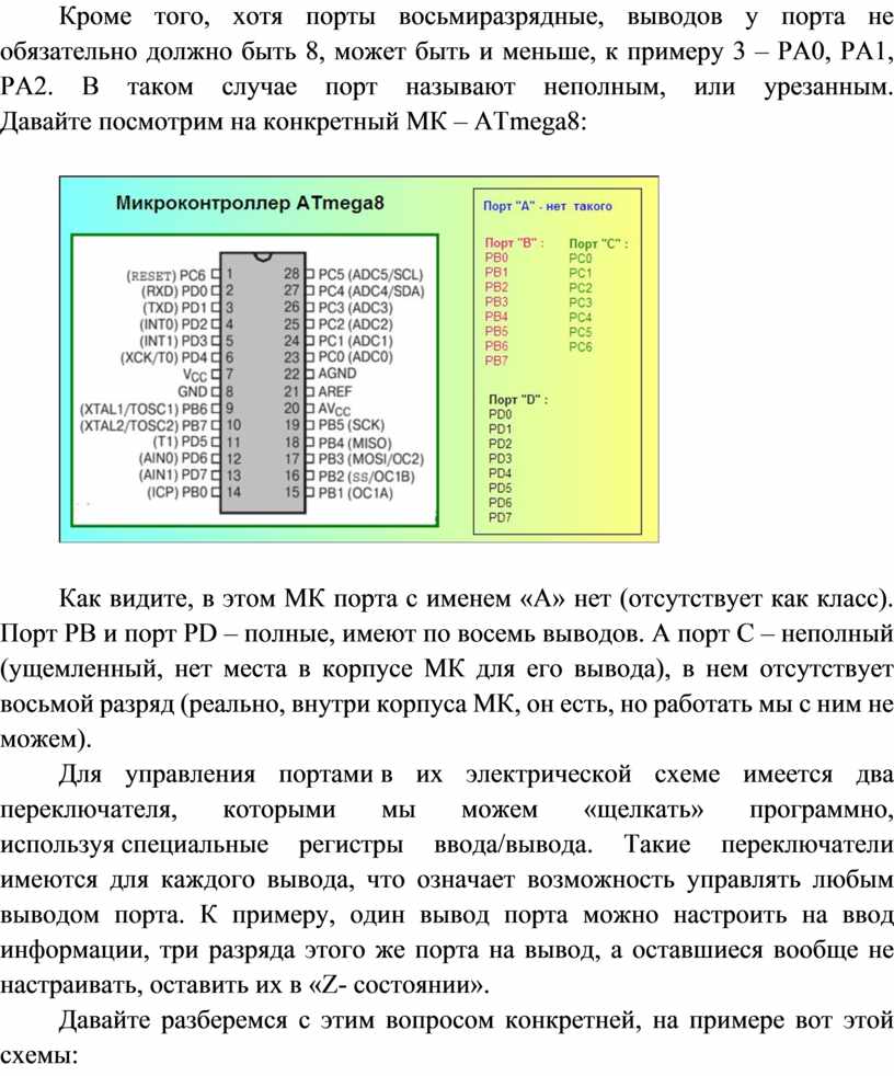 меньше, к примеру 3 – PA0, PA1, PA2. В таком случае порт называют неполным, или