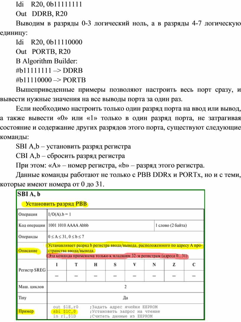 Данные команды работают не только с РВВ DDRx и PORTx, но и с теми, которые имеют номера от 0 до 31.