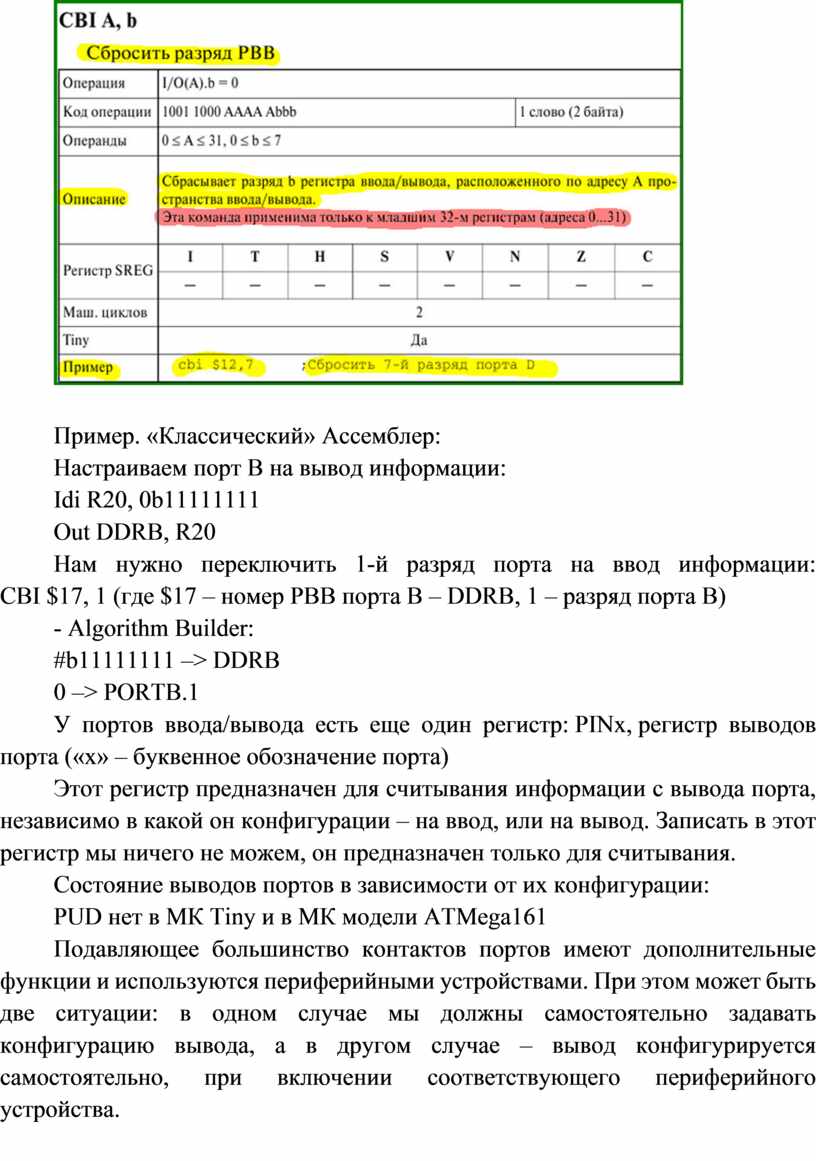 В Algorithm Builder запись немного отличается:#b01100010 –> DDRB.