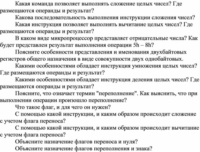 Если результат выполнения операции (над беззнаковыми величинами!) не может быть полностью размещен в регистре, то говорят о возникновении переполнения.