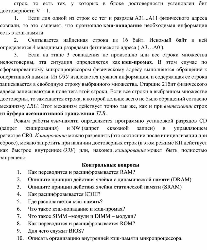 4. Считывается найденная строка из 16 байт. Искомый байт в ней определяется 4 младшими разрядами физического адреса ( А3…А0 ).