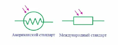 Символ американского стандарта и символ международного фоторезистора показаны на рисунке.