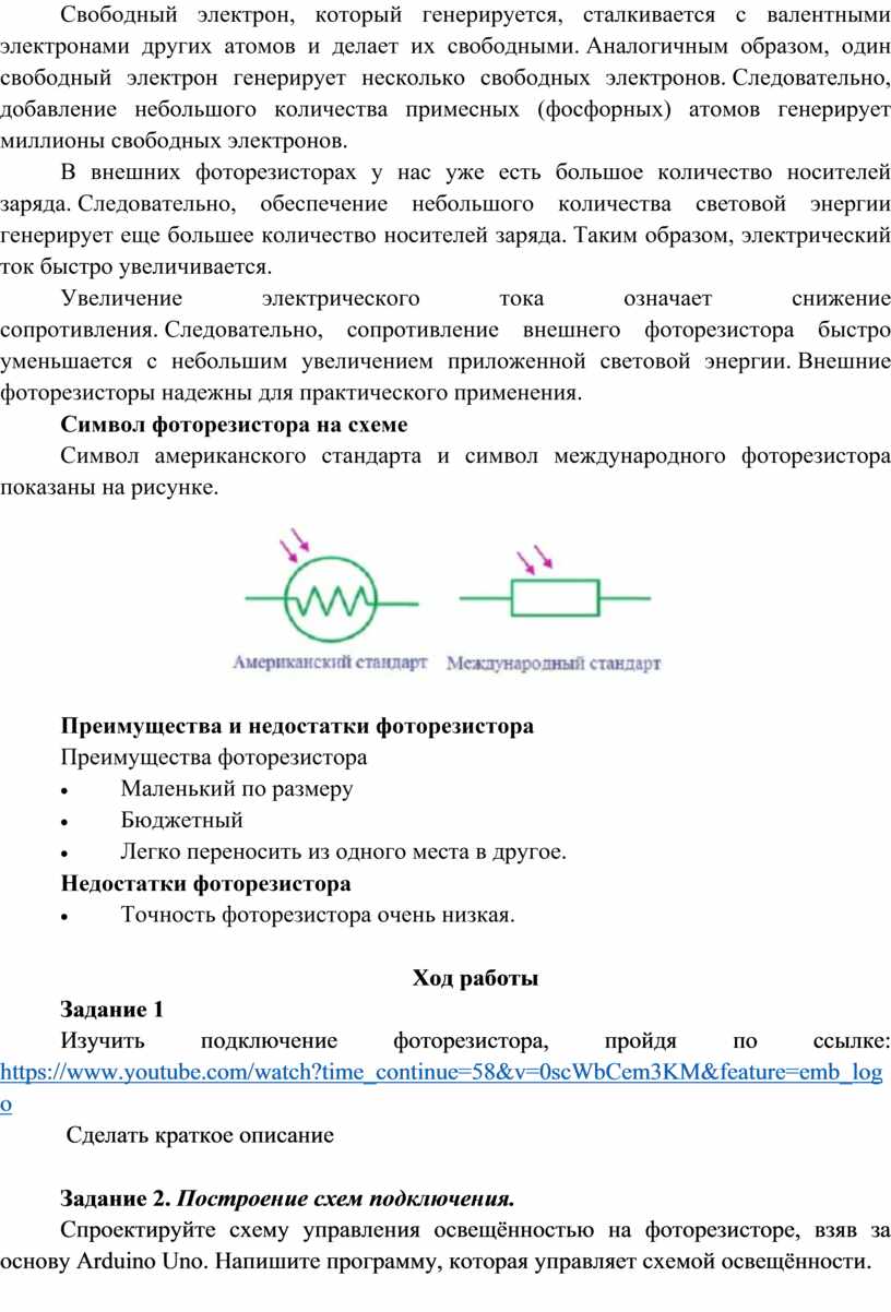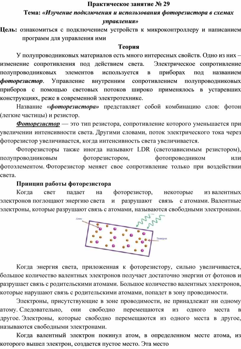 Тема: «Изучение подключения и использования фоторезистора в схемах управления»