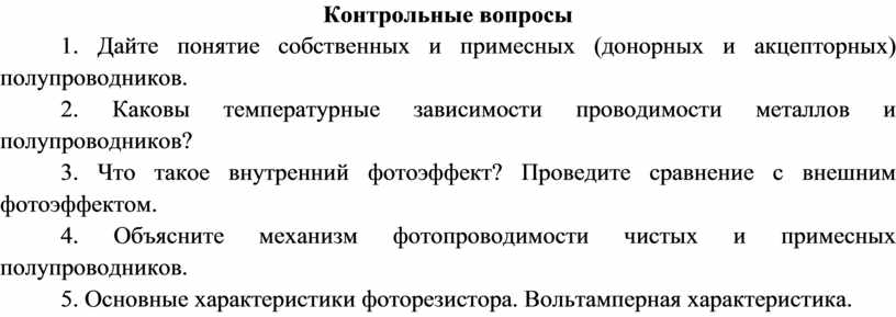 5. Основные характеристики фоторезистора. Вольтамперная характеристика.
