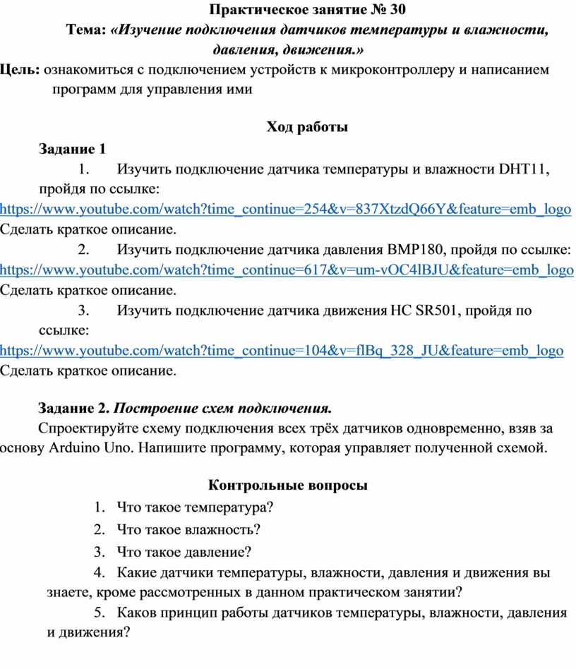 4. Какие датчики температуры, влажности, давления и движения вы знаете, кроме рассмотренных в данном практическом занятии?