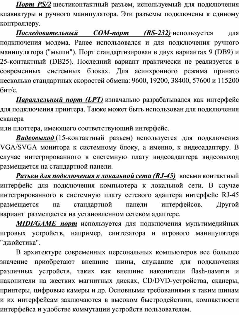 Порт PS/2 шестиконтактный разъем, используемый для подключения клавиатуры и ручного манипулятора. Эти разъемы подключены к единому контроллеру.