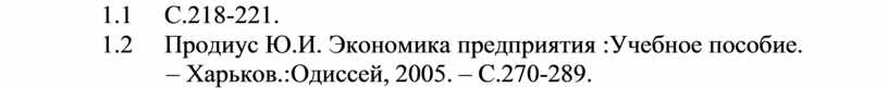 1.2 Продиус Ю.И. Экономика предприятия :Учебное пособие. – Харьков.: Одиссей, 2005. – С.270-289.
