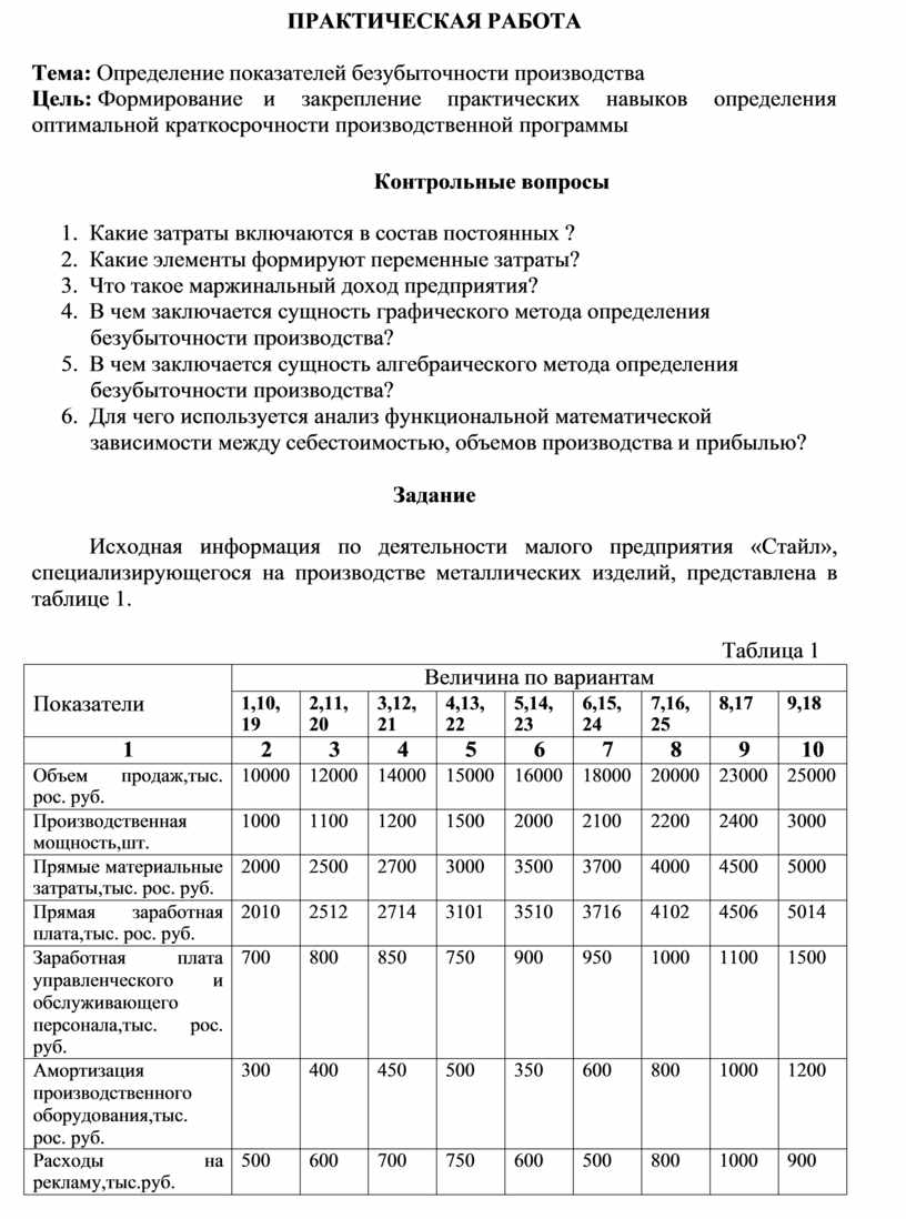 Исходная информация по деятельности малого предприятия «Стайл», специализирующегося на производстве металлических изделий, представлена в таблице 1.