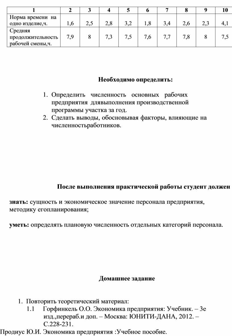 знать: сущность и экономическое значение персонала предприятия, методику его планирования;