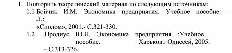 1.1 Бойчик И.М. Экономика предприятия. Учебное пособие. – Л.: