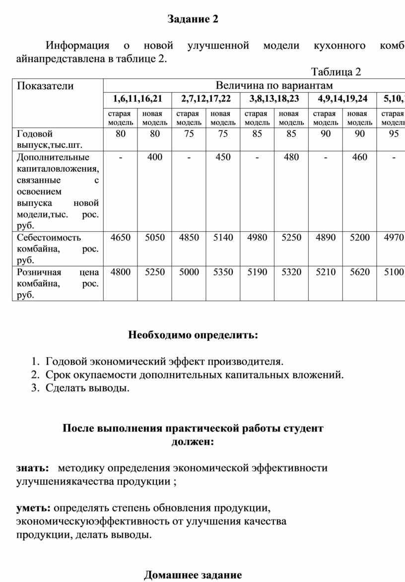 Цель: Формирование и закрепление практических навыков определения экономической эффективности от улучшения качества продукции