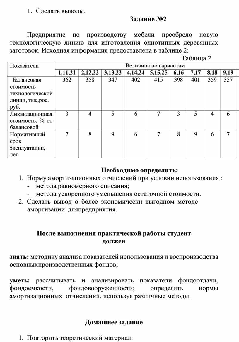 уметь: рассчитывать и анализировать показатели фондоотдачи, фондоемкости, фондовооруженности; определять нормы амортизационных отчислений, используя различные методы.