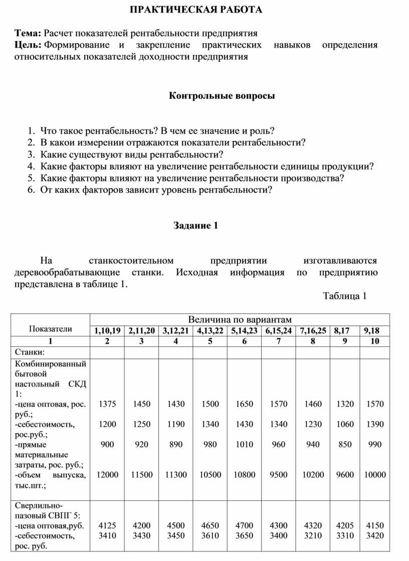 После выполнения практической работы студент должен: знать: методику определения различных видов рентабельности ;