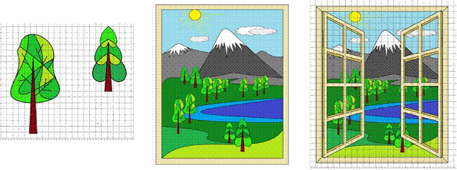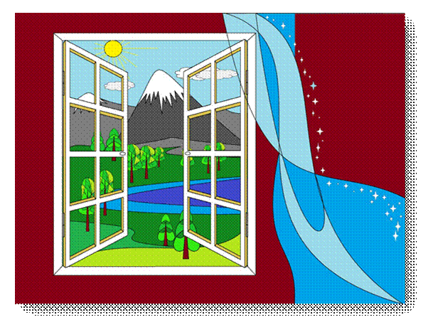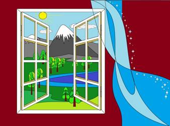 12. В оконной раме нарисуте пейзаж, используя вожможности кривой линии.