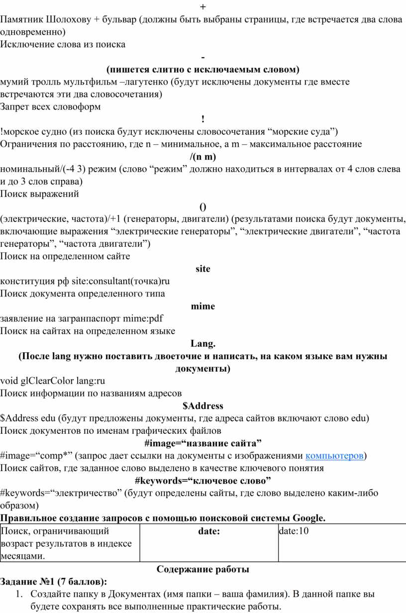 Правильное создание запросов с помощью поисковой системы Google.