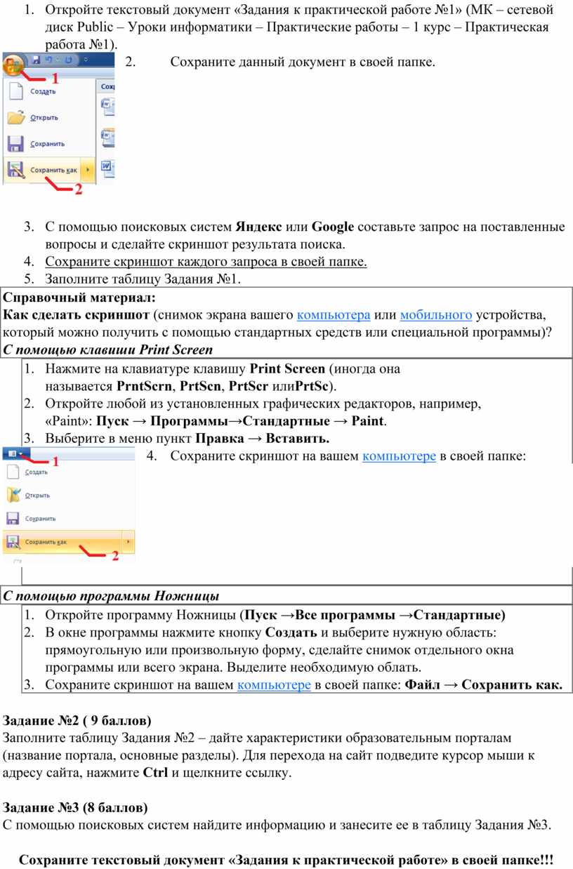Сохраните текстовый документ «Задания к практической работе» в своей папке!!!