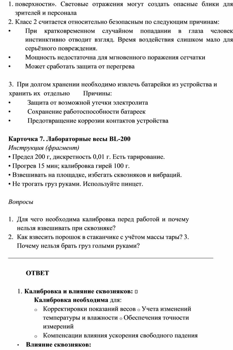 1. Для чего необходима калибровка перед работой и почему нельзя взвешивать при сквозняке?