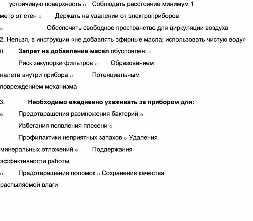 2. Можно ли добавлять эфирные масла? Обоснуйте согласно инструкции. 3. Зачем ежедневно сливать воду и чистить резервуар?