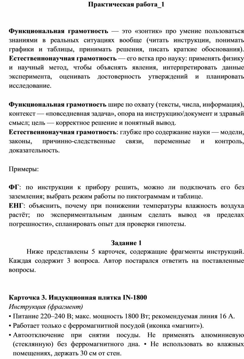 Функциональная грамотность — это «зонтик» про умение пользоваться знаниями в реальных ситуациях вообще (читать инструкции, понимать графики и таблицы, принимать решения, писать краткие обоснования). Естественнонаучная грамотность — его ветка про науку: применять физику и научный метод, чтобы объяснять явления, интерпретировать данные эксперимента, оценивать достоверность утверждений и планировать исследование.
