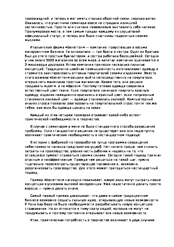 Итак, практическая потребность в творчестве возникает в двух случаях:1. Когда существует реальная потребность в новой идее и мы не можем