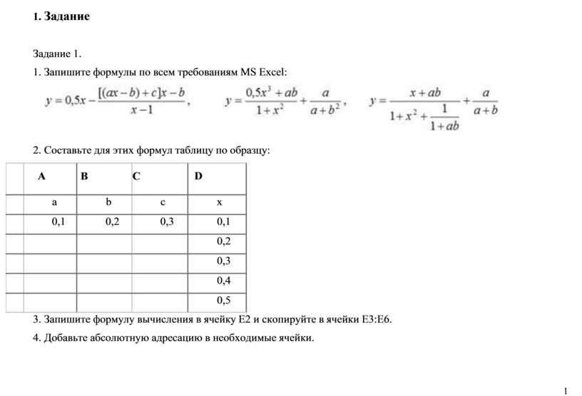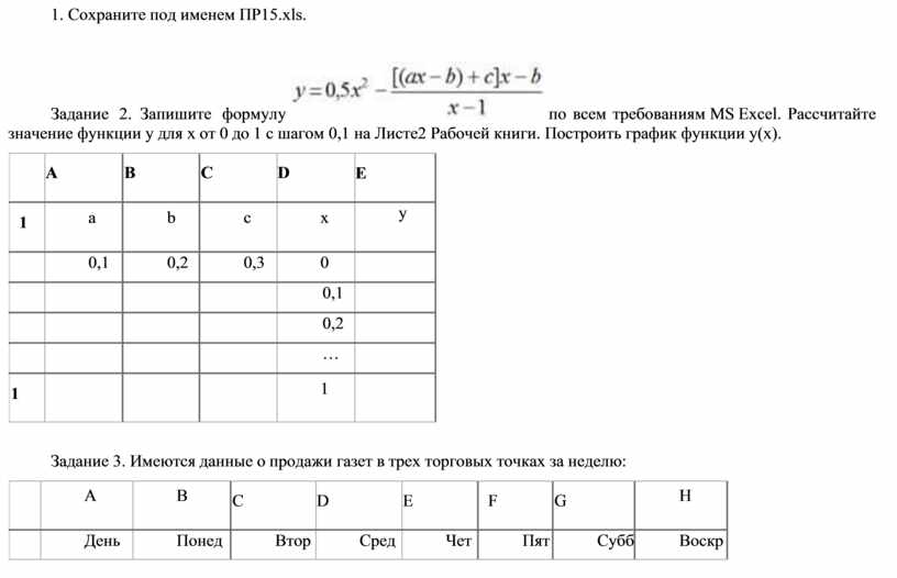 2. Оборудование, приборы, аппаратура, материалы: персональный компьютер, программа MS Excel.