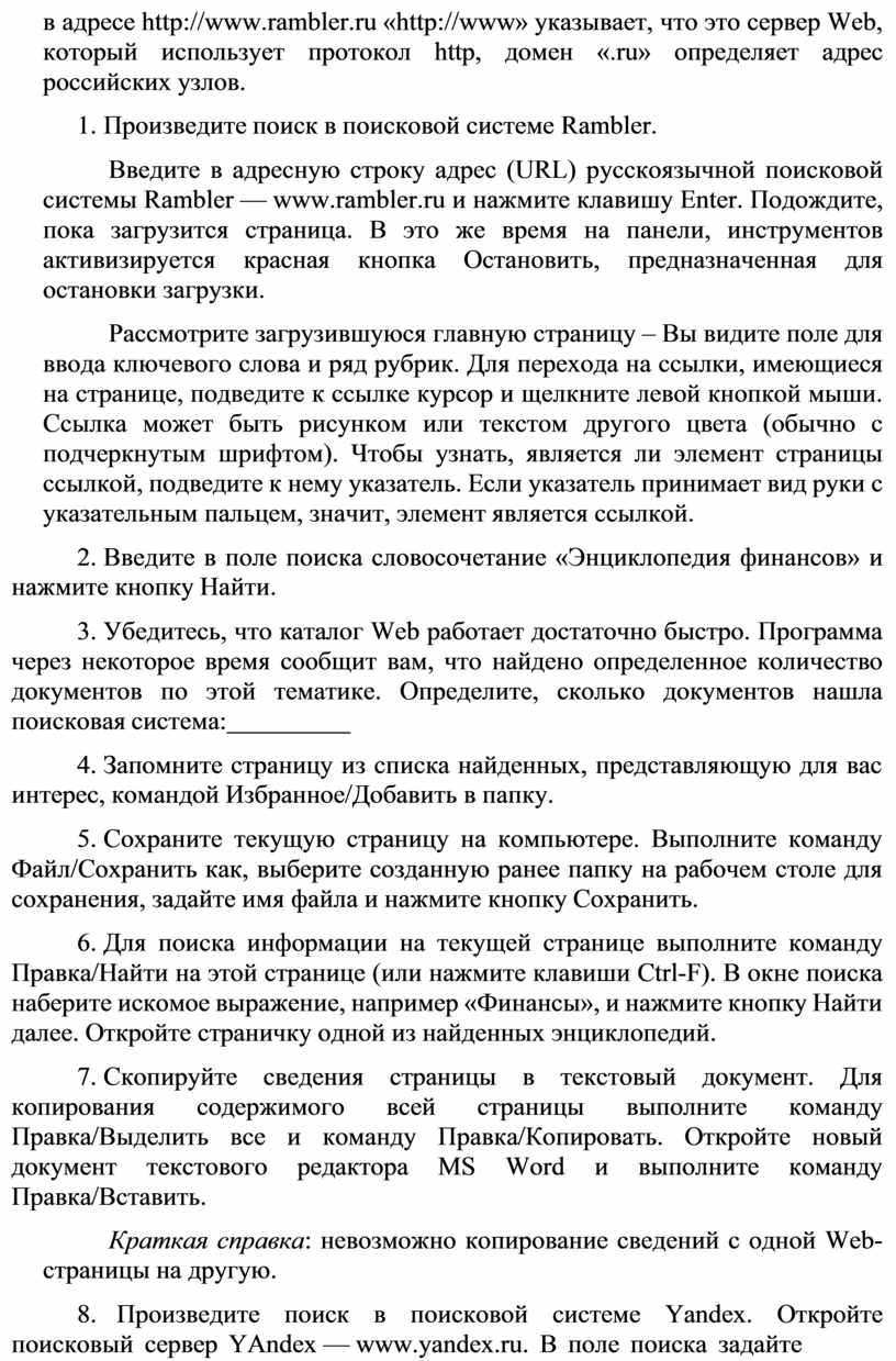 Краткая справка. Наиболее популярными русскоязычными поисковыми системами являются: