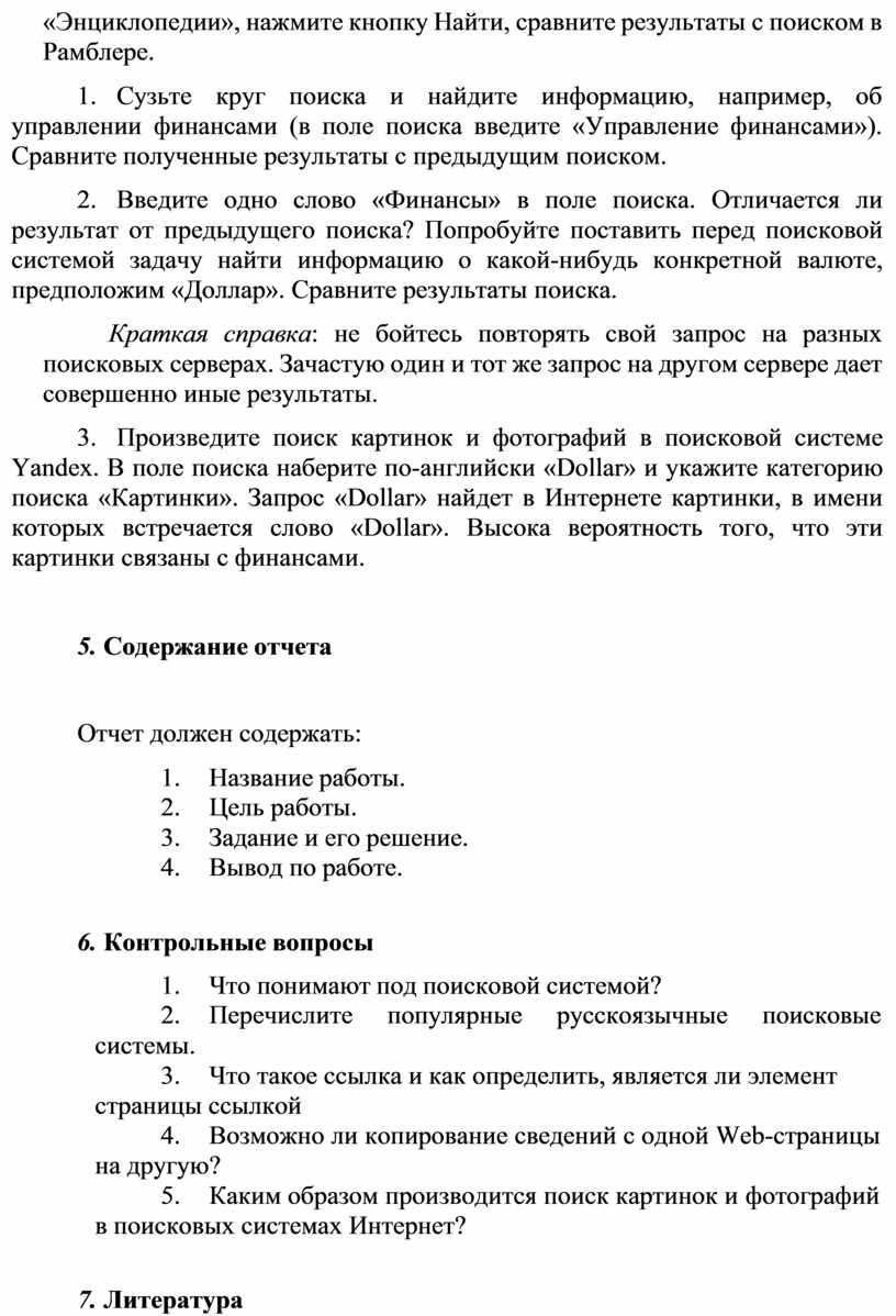 1. Цель работы: научиться осуществлять поиск информации с помощью поисковых систем.