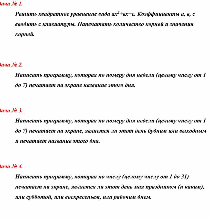 Написать программу, которая по номеру дня недели (целому числу от 1 до 7)