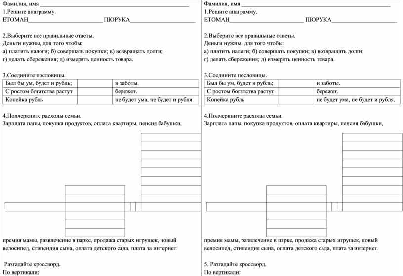 5. Разгадайте кроссворд. По вертикали: 1. Регулярная выплата, которую предоставляют учащимся учебных заведений. 2. Дополнительное денежное вознаграждение, выдаваемое сверх заработной платы. По горизонтали: 3. Регулярные денежные выплаты, которые государство назначает гражданам в старости, при утрате трудоспособности или потере кормильца.