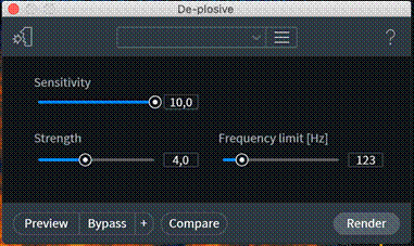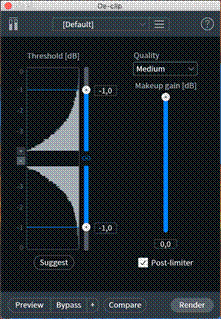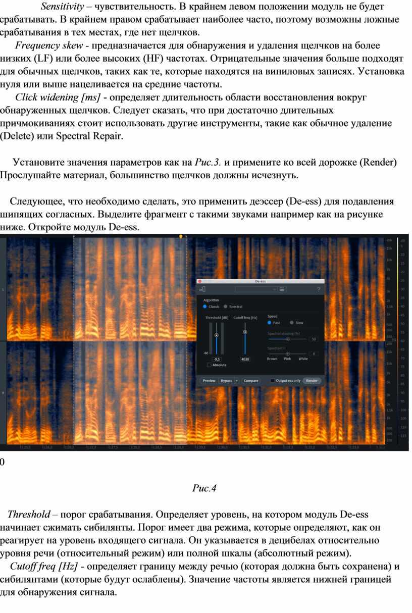 Click widening (ширина щелчка) - расширяет зону восстановления вокруг обнаруженных щелчков, компенсируя звуки изо рта, такие как шлепки губами, которые затухают.