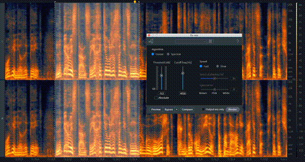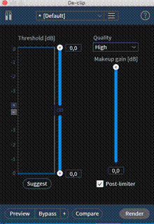 Multi-band (Periodic clicks) - использует многополосную обработку для удаления регулярно повторяющихся щелчков с более широким спектром или обычных щелчков с концентрированной низко- или высокочастотной энергией (например, удары или шум перфорации оптической звуковой дорожки).